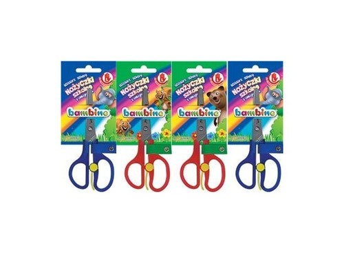 Nożyczki szkolne idealne dla maluchów. Odbojnik powoduje, że po każdym zaciśnięciu, nożyczki wracają do pozycji otwartej. Plastikowa rękojeść idealnie dopasowuje się do dłoni dziecka. Końcówki ostrzy są bezpiecznie zaokrąglone, tak aby zapobiec zranieniu się. Wersja dla leworęcznych.