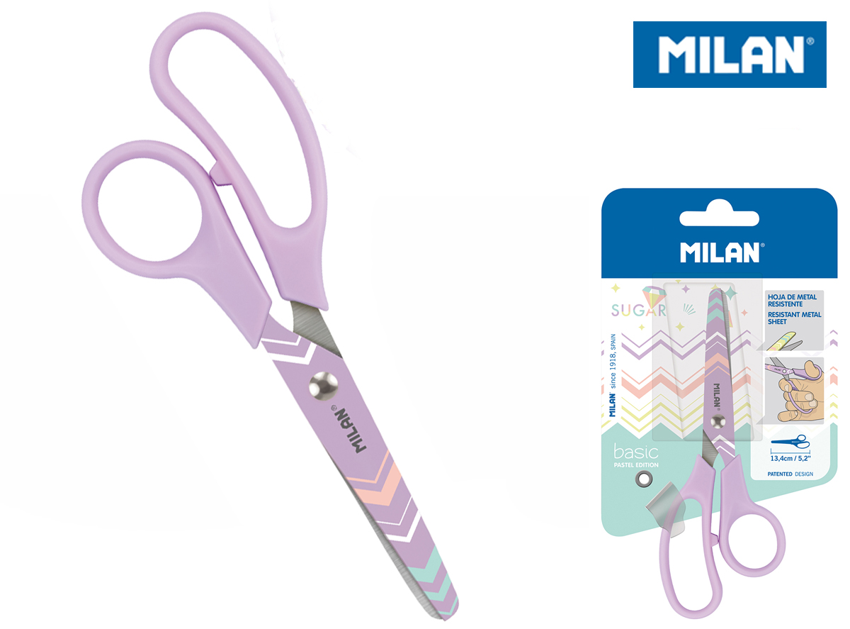 Nożyczki szkolne basic SUGAR DIAMONDS z plastikowymi uchwytami w pastelowych kolorach. Długość 13,4 cm. Ostrza z nierdzewnej stali zaokrąglone na końcach. Pakowane na blistrze, kolor fioletowy. Wymiary: 13,3 x 5,3 x 1,1 cm.