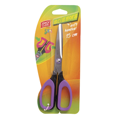 Nożyczki szkolne z miękką rączką: -kolor raczki-fioletowy -rozmiar: 15cm -idealne do szkoły, biura i domu