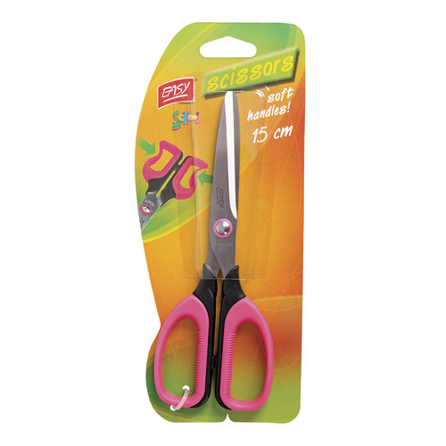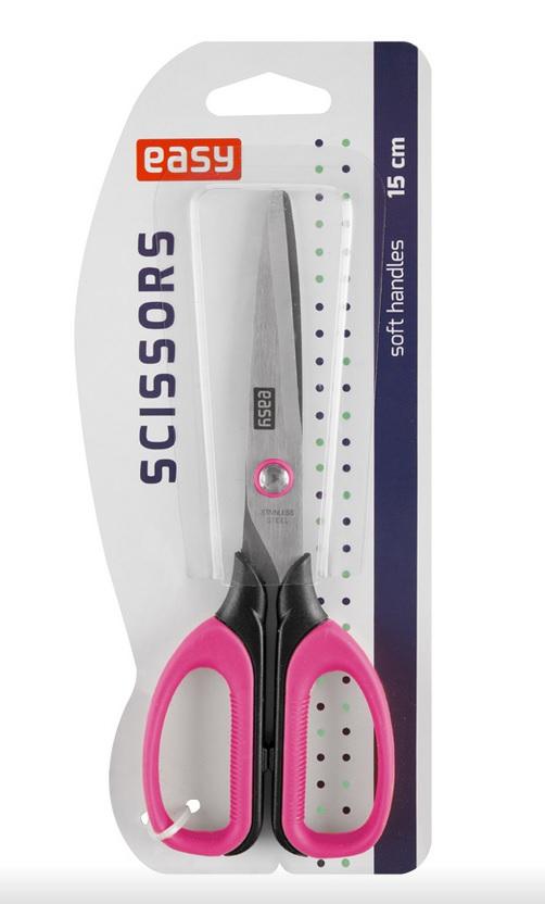 Nożyczki szkolne z miękką rączką: -kolor raczki-różowy -rozmiar: 15cm -idealne do szkoły, biura i domu