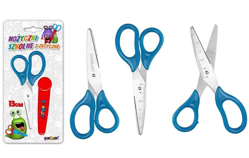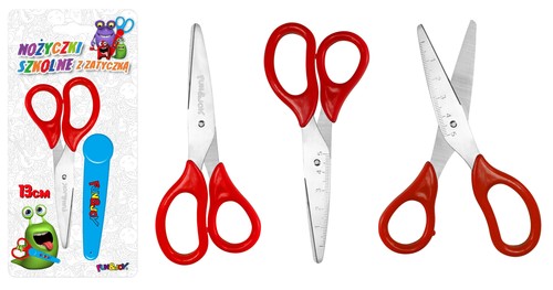 Nożyczki szkolne Fun & Joy. Z podziałką na ostrzu. Ostrze chronione zatyczką.
