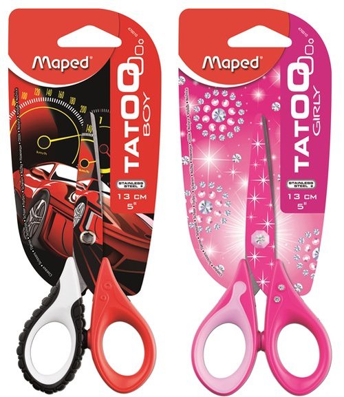 Wyjątkowe nożyczki TATOO INNOVATION z lakierowanymi ostrzami. Zaprojektowane z myślą o dziewczęcych i chłopięcych upodobaniach. Długość 13 cm. Sprzedawane w miksie 12 szt (8 wzorów dziewczęcych i 4 chłopięce) lub na sztuki ale wtedy wybór wzorów jest przypadkowy. JS 1 szt.