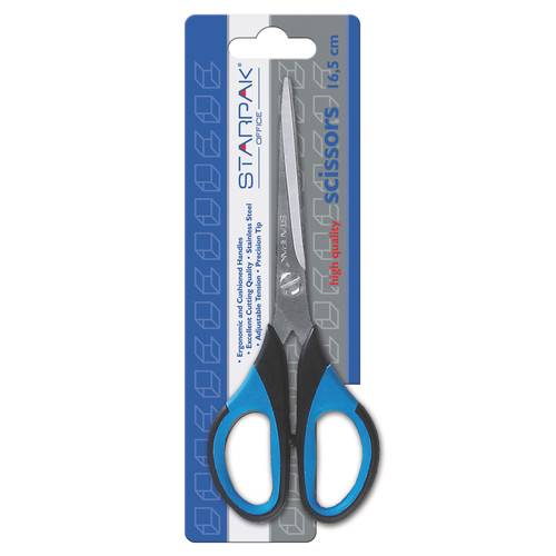 Nożyczki z doskonałym ostrzem z nierdzewnej stali najwyższej jakości. Ergonomiczna, bardzo wygodna gumowana rączka zapewnia precyzję i optymalizuje siłę używaną do cięcia. Chętnie kupowane zarówno do biura, jak i domu. Pakowane w atrakcyjne blistry.