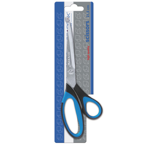 Nożyczki z doskonałym ostrzem z nierdzewnej stali najwyższej jakości. Ergonomiczna, bardzo wygodna gumowana rączka zapewnia precyzję i optymalizuje siłę używaną do cięcia. Chętnie kupowane zarówno do biura, jak i domu. Pakowane w atrakcyjne blistry.