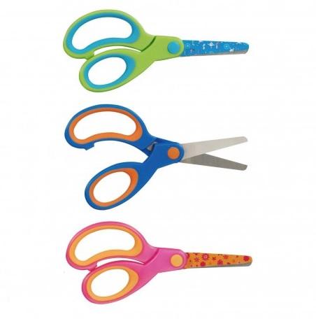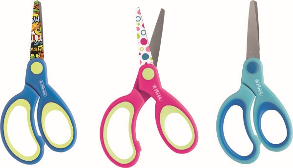 Nożyczki zaokrąglone Herlitz w rozmiarze dziecięcym, uchwyty zostały pokryte elastycznym tworzywem sztucznym tak aby podnieść komfort wycinania, ostrza ozdobione kolorowym nadrukiem, dostępne 3 wersje kolorystyczne. Wzory wysyłane losowo.