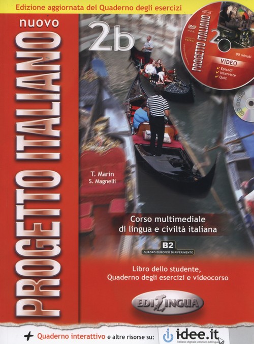 Nuovo Progetto Italiano 2b to kurs języka włoskiego dla osób powyżej 16. roku życia. Jego treść jest zgodna z Europejskim systemem opisu kształcenia językowego. Nuovo Progetto Italiano 2b jest przewidziany na 45-50 godzin nauki Pakiet zawiera: - rozdziały 6-11 z podręcznika i zeszytu ćwiczeń - nowy rozdział zatytułowany Attivit? video (odcinki 6-11) do płyty DVD ROM dostępnej w sprzedaży oddzielnie - grę dydaktyczną - interaktywną płytę CD ROM - płytę CD audio z nagraniami dialogów, a także ćwiczenia na rozumienie ze słuchu oraz wymowę Powyższa pozycja nie zastępuję standardowej wersji Nuovo Progetto Italiano, lecz stanowi alternatywę dla nauczyciela.