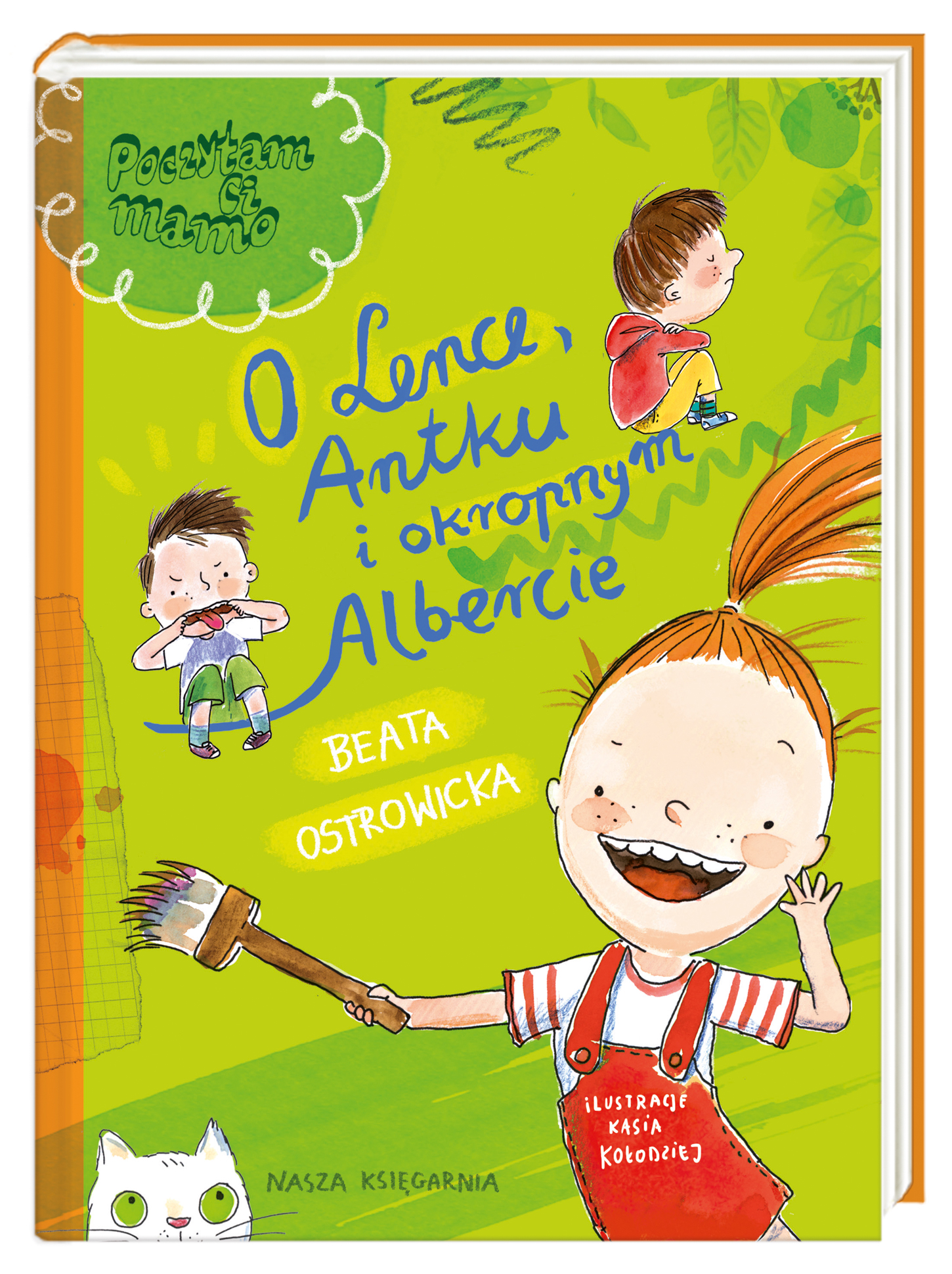 Zaczynają się wakacje. Lenka skacze z radości, za to Antek, jej najlepszy przyjaciel, trochę się martwi. Już wkrótce odwiedzi go kuzyn. Albert jest paskudny, po prostu nie do wytrzymania… I co tu zrobić? Wyprowadzić się do Lenki czy może do domku na drzewie? Niestety rodzice raczej się nie zgodzą. Ale najgorsze, że Albert tak świetnie udaje miłego chłopca… Seria „Poczytam ci, mamo” to bogato ilustrowane książki wyróżniające się dużą czcionką i tematyką bliską dzieciom. Polecamy dla początkujących czytelników! Beata Ostrowicka – autorka książek dla dzieci i młodzieży. Wydała ponad dwadzieścia książek. Była doceniana licznymi nagrodami i wyróżnieniami (m.in. „Ale ja tak chcę!” zdobyła tytuł Książki Roku 2006 Polskiej Sekcji IBBY; „Świat do góry nogami” otrzymał w 2004 roku wyróżnienie Międzynarodowej Sekcji IBBY i został wpisany na Honorową Listę Andersena). Wiele jej książek poleca Fundacja ABC, prowadząca akcję „Cała Polska czyta dzieciom”. Niektóre książki zostały przetłumaczone na języki obce. Mieszka w Krakowie z mężem i dwoma synami. Katarzyna Kołodziej — wrocławska ilustratorka, kucharka, mama, posiadaczka pręgowanego kota oraz królewna, która (jak każda królewna) musi być czasem porwana. Ponieważ najczęściej porywa ją rysowanie, rysuje bez przerwy. W swoich ilustracjach stara się pokazywać dziecięce emocje. Skończyła wrocławską ASP, miewa czasem wystawy, współpracuje z wieloma wydawnictwami dla dzieci i jak wielka kula śniegowa nabiera rozpędu… w tworzeniu. Jej prace można obejrzeć na stronie www. krolewnakasia .pl.