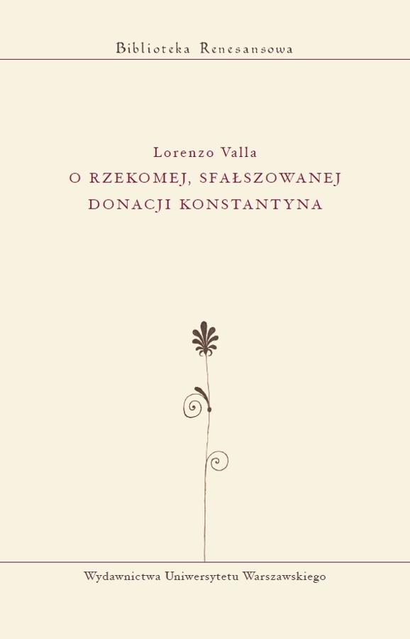 Przekład łacińskojęzycznego traktatu Lorenzo Valli z 1440 r. Autor zajmuje się kwestią autentyczności tak zwanej Donacji Konstantyna, dokumentu pochodzącego rzekomo od cesarza Konstantyna Wielkiego, a w rzeczywistości powstałego - jak się go obecnie datuje - na przełomie VIII i IX w. Dokument ten utrzymuje, że Konstantyn podarował Kościołowi rzymskiemu całą zachodnią część Cesarstwa Rzymskiego. Traktat ma formę ?mowy w obronie prawdy?, Valla posługuje się w nim całym wachlarzem argumentów z zakresu prawa, historii i historiografii, religii, polityki itp.., żeby wykazać niemożliwość przeprowadzenia takiej darowizny.
