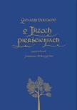 Ilustracje i opracowanie graficzne Joanna Rusinek. Historię opowiedział Jarosław Mikołajewski.Giovanni Boccaccio urodził się w 1313 roku we Włoszech, w toskańskim mieście Certaldo. W najsłynniejszej swojej książce, Dekameronie, opisał historię dziesięciu osób, które przed potworną epidemią śmiertelnej choroby schroniły się w willi, i przez dziesięć dni opowiadały sobie ciekawe historie. Jedną z nich jest nowela o Melchizedechu, która pokazuje, że mądrym sprytem można się wydobyć z kłopotów, i pokazuje też coś znacznie ważniejszego.Historia o trzech pierścieniach opowiadana była jeszcze przed Boccacciem, i aż dziw bierze, że po tylu latach ludzie nie przyswoili sobie jej mądrości.W 2013 roku Boccaccio kończy 700 lat. Choć pisał dla dorosłych, obchody jego urodzin tą książeczką zaczną dzieci.
