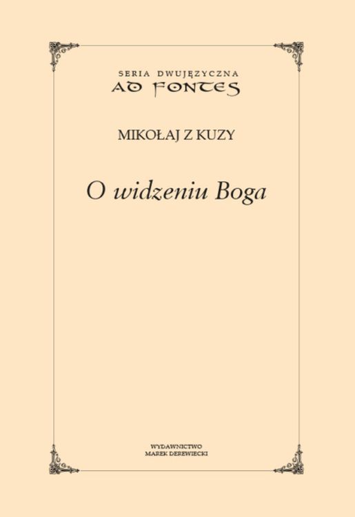 Eksperyment zastosowany przez Kuzańczyka w O widzeniu Boga ukazuje zatem trudną do pojęcia dialektykę pomiędzy Bożą transcendencją i immanencją, która jest skutkiem Bożej stwórczej Absolutnej Mocy, będącej źródłem bytu każdej rzeczy. Boża Moc jest samym aktualnym istnieniem (actu esse) a zarazem jest wszystkim tym, co może istnieć (posse esse). To jednoczesne połączenie absolutnego aktualnego bycia z absolutną możliwością bycia wyraźnie odróżnia tę nieskończoność od możliwości bycia materii. Nieskończoność jest bowiem najpełniejszą, jednoczesną i najprostszą aktualizacją wszelkiej możności. Boża Nieskończona Moc jest mocą najprostszą i najbardziej zjednoczoną, dlatego jest mocą najbardziej skuteczną. Ta własność sprawia, że w tym wypadku można mówić o Bożej Wszechmocy, która jest znamieniem doskonałości, całościowości, całkowicie przeciwstawnej starożytnemu rozumieniu nieskończoności (…) (fragment Wprowadzenia prof. Agnieszki Kijewskiej) W Kuzańczykowym uniwersum poznanie podlega określonej hierarchii. Pierwszym stopniem jest poznanie zmysłowe, po nim następuje poznanie rozumowe, a na końcu akt kontemplacji, odpowiadający najwyższej funkcji intelektu. Cały zamysł traktatu De visione Dei jest oparty o ową drabinę poznania: przedmiotem poznania zmysłowego jest ikona, przedmiotem poznania rozumowego – specyfika Bożego widzenia ujęta w formę tekstu, celem całego procesu – kontemplacja po wejściu „w świętą ciemność”. Filozofowie zaczynają zazwyczaj od pojęcia, a historycy filozofii od tekstu. W tym przypadku punktem wyjścia nie jest jednak pojęcie widzenia ani sam tekst De visione Dei, lecz materialny przedmiot: tabella – niewielka, drewniana deska z wizerunkiem, która stanie się przedmiotem specyficznego zmysłowego eksperymentu. Znaczenia drewnianej ikony dla interpretacji całej myśli zawartej w traktacie dowodzi również tytuł dzieła, który w pierwszych wydaniach (bazylejskim i paryskim) występuje w wersji rozszerzonej: De visione Dei sive De icona. Sam Kuzańczyk nazywa ten tekst Iconae w dziele De possest. (fragment Wstępu dr Barbary Grondkowskiej)