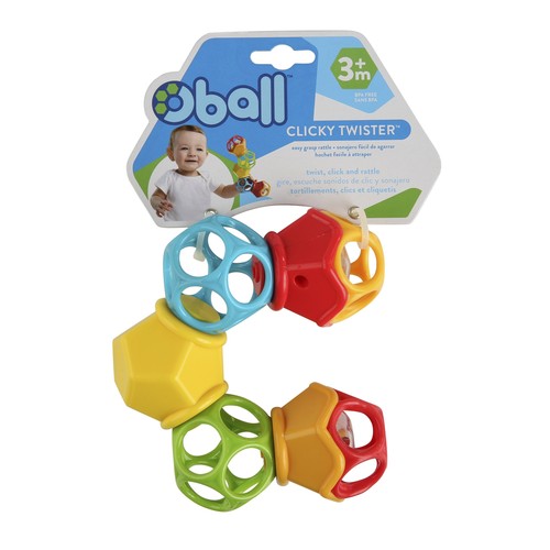 Oball Twister to idealna grzechotka dla niejednego malucha. Zabawka ta kształtuje i wspomaga rozwój motoryki, koordynacji ruchowej, a w szczególności ułatwia naukę chwytania. Oball Twister to nie zwykła grzechotka, można nią obracać w różne kierunki, przy czym słychać dźwięk klikania. Wesołe kolory, na pewno zachwycą Twojego maluszka do zabawy. Zabawka wykonana jest z miękkich elementów. Wszystkie te cechy zachęcają dzieci do zabawy.