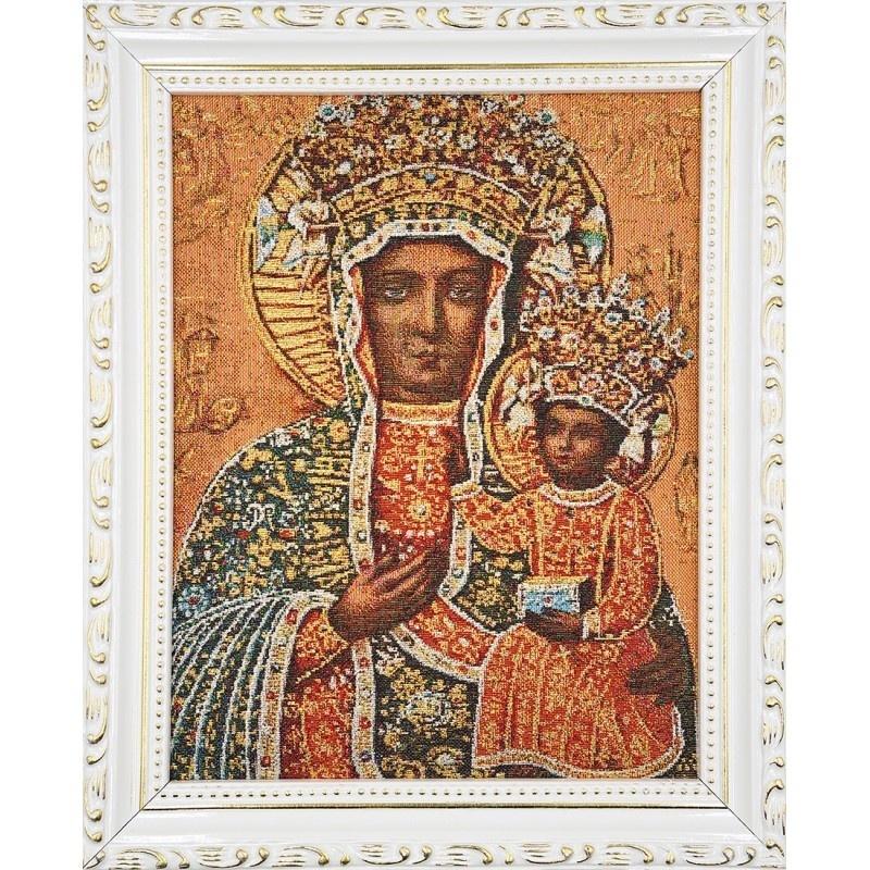 Haftowany Obraz w Białej Ramie - Matka Boska Częstochowska w Sukni Brylantowej, 22x27,5 cm