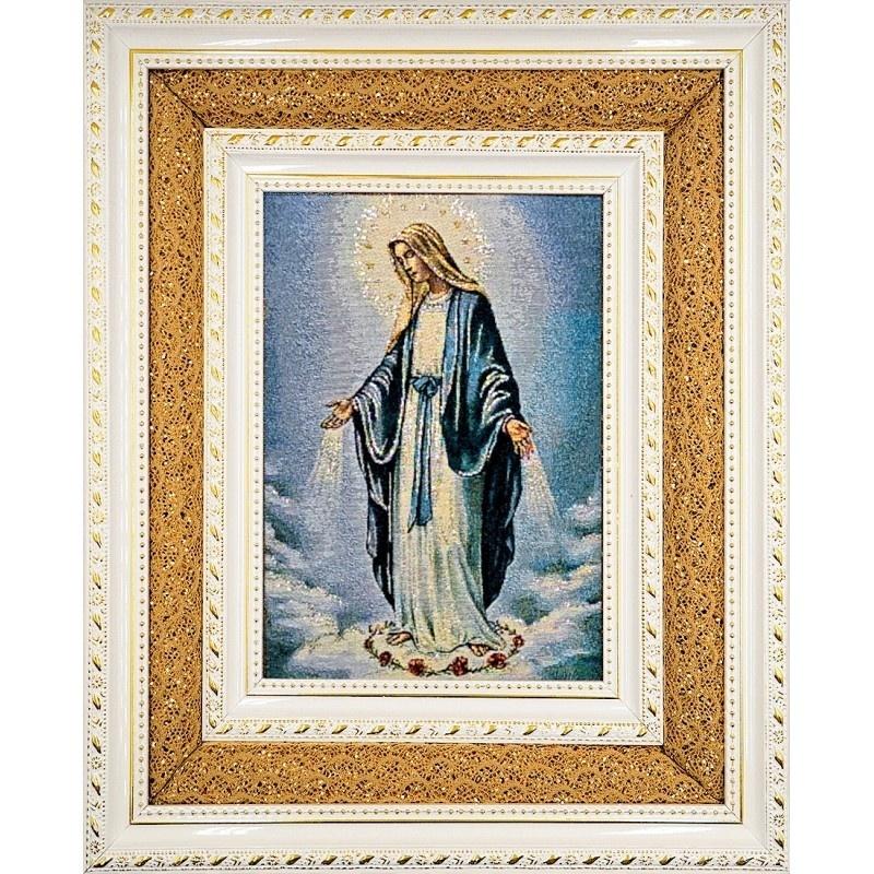 Haftowany Obraz Matka Boża Niepokalana w Podwójnej Ramie - Złocenia i Szlachetny Haft, 38x32 cm