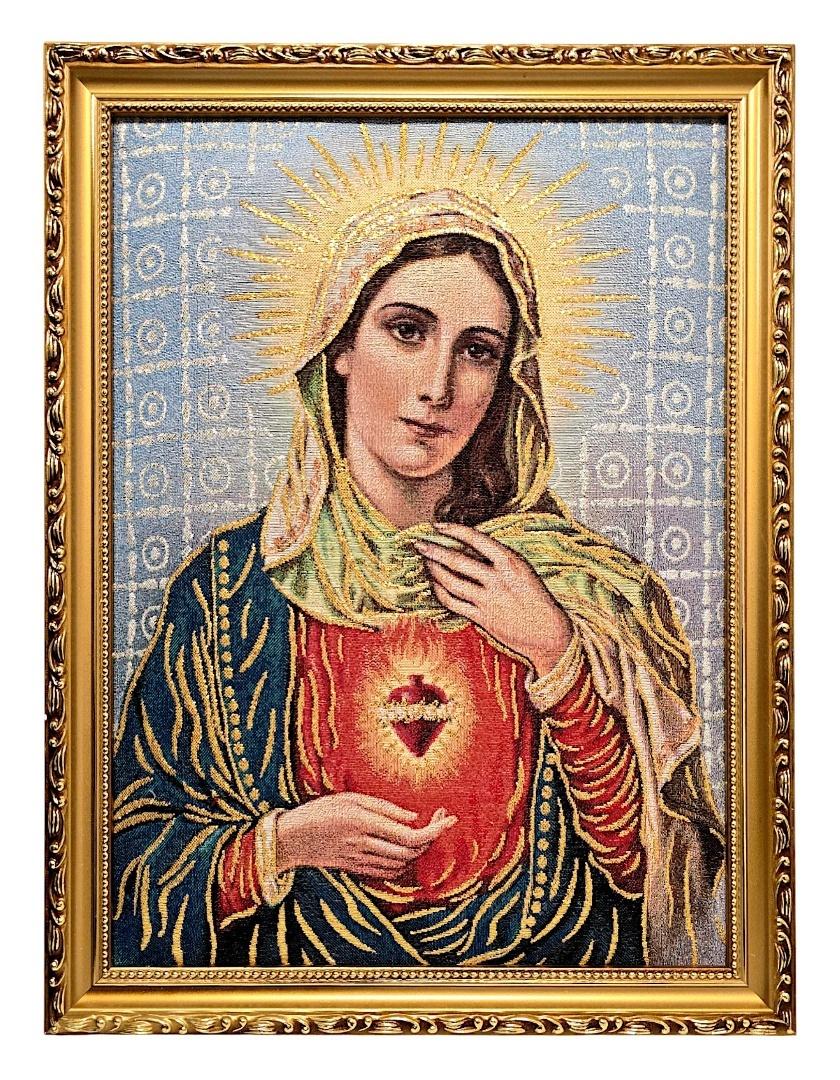 Haftowany Obraz Niepokalanego Serca Maryi w Złotej Ramie - 32x42 cm