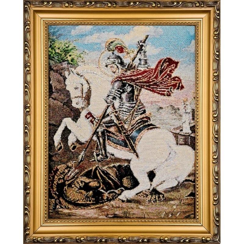 Haftowany Obraz Św. Jerzy Zabijający Smoka w Złotej Ramie - 22x27,5 cm