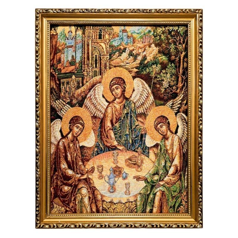 Wykonany z dbałością o detale, oddający mistykę i teologiczny sens ikony Rublowa. Złote nici dodają obrazowi uroczystego i sakralnego charakteru. Elegancka złota rama podkreśla jego piękno i jest gotowa do zawieszenia. To idealny prezent dla osób ceniących duchową głębię ikon, poszukujących inspiracji w kontemplacji Trójcy Świętej.