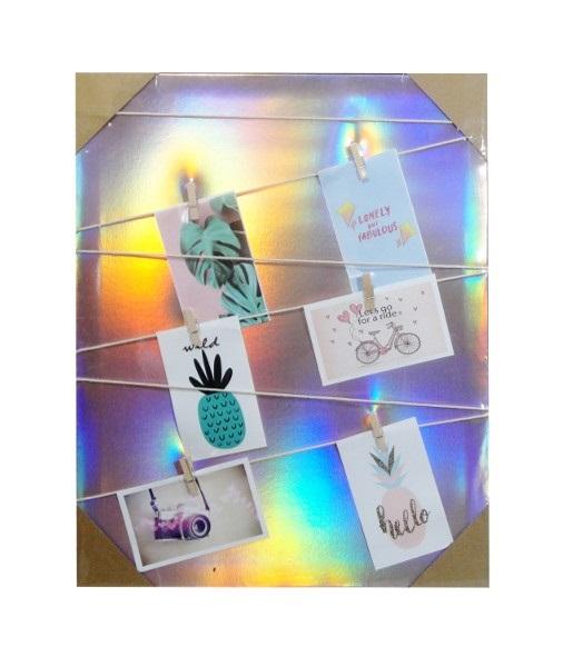 Holograficzny obraz ramka ze sznurkiem i klamerkami gdzie można powiesić swoje ulubione zdjęcia, które będą nam przypominać miłe chwile. Produkt do powieszenia na ścianie.