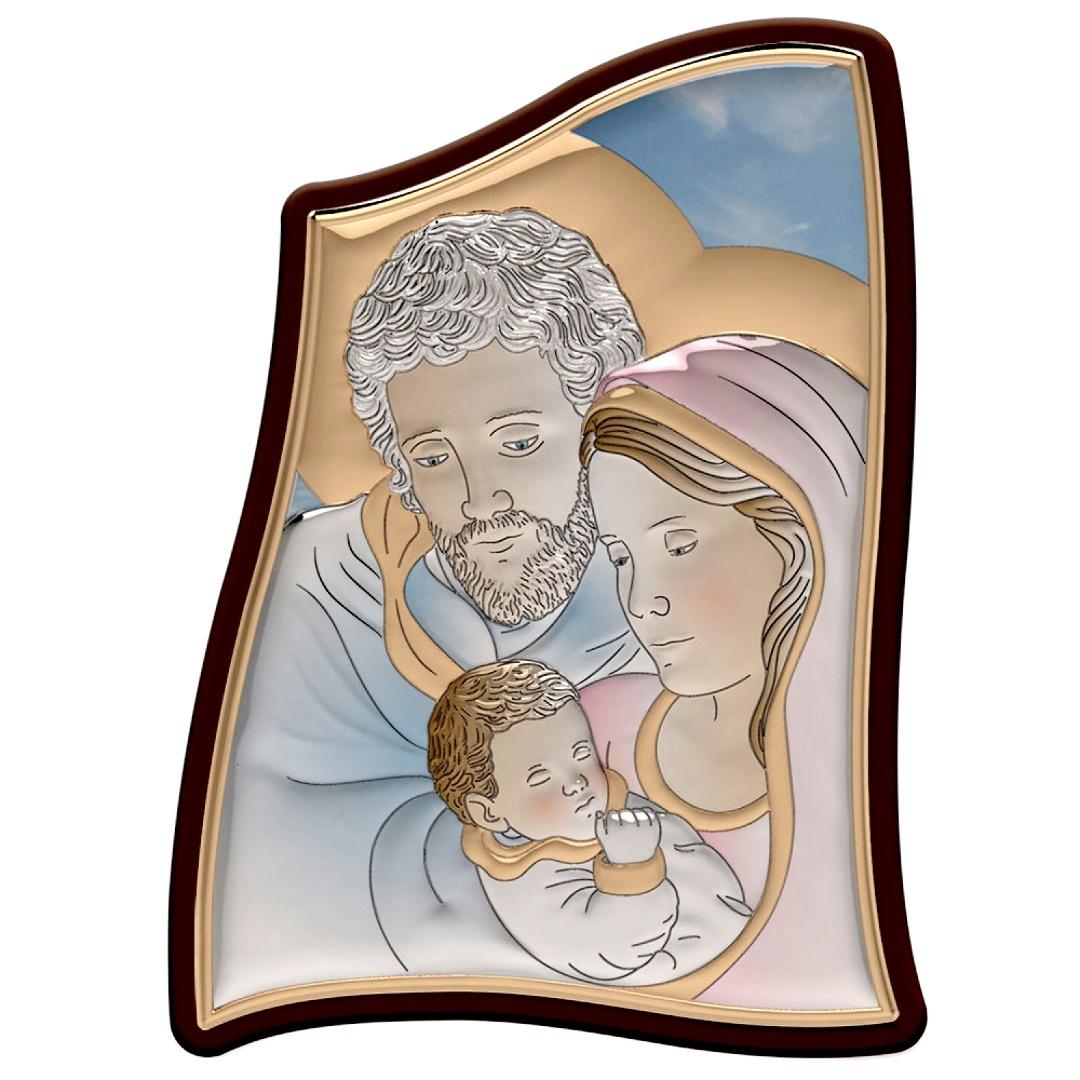 Srebrny Kolorowany Obrazek Święta Rodzina na Drewnie - 20x14,5 cm, Z Podstawką