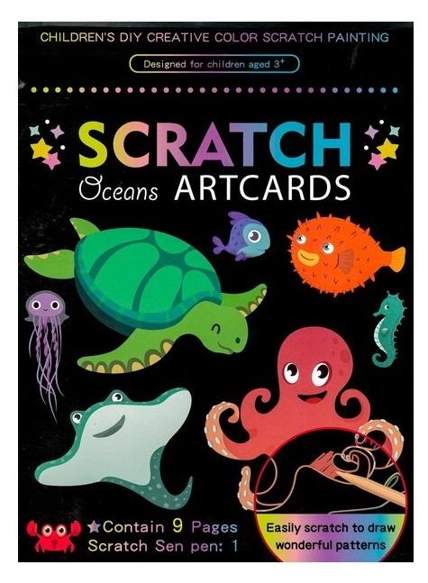 Zestaw 9 różnych obrazków do drapania, rozmiar obrazka 14 x 19 cm, pisak do drapania
