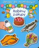 Dzięki zabawie z naklejkami najmłodsze dzieci poznają różne miejsca, w których robi się zakupy.