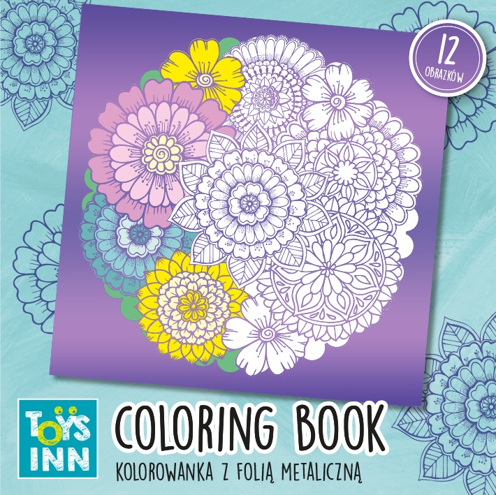Zestaw zawiera 12 obrazków do kolorowania, z motywami zwierzęcymi i rożlinnymi. Obrazki zawierają folię metaliczną w kolorach: rózowym, fioletowym i niebieskim. Do kolorowania można używać kredek lub mazaków.