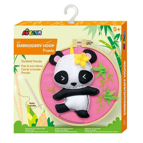 Wyhaftuj swoją własną słodką Pandę. Ten wspaniały zestaw zawiera wszystko, czego mały artysta lub artystka potrzebuje do wykonania swojego pierwszego haftowanego dzieła. Haftowanie to czynność rozwijająca sprawność manualną i koordynację oko-ręka, a także wyciszająca. Zestaw z uroczym zwierzątkiem to świetny prezent dla kreatywnego dziecka, zarówno dziewczynki jak i chłopca. Zawartość: tamborek (średnica 16cm) kawałki bawełny włóknina mulina bezpieczna igła Wiek: 5+