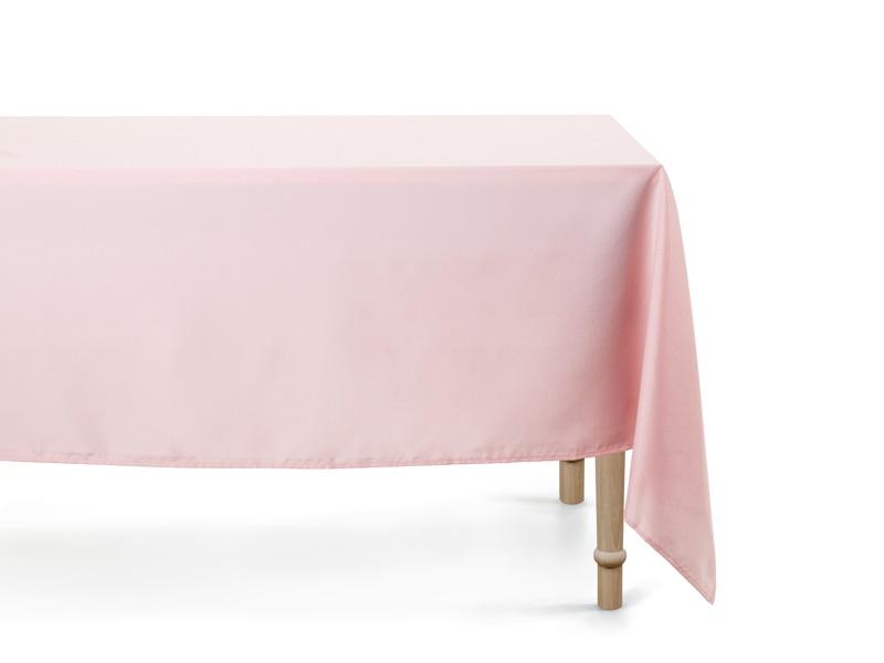 Obrus na stół z matowego materiału w kolorze brudnego różu, wymiary 180x300 centymetrów.