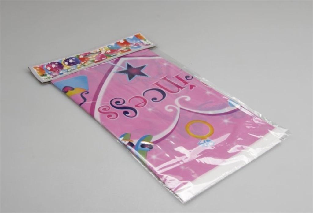 OBRUS PLASTIKOWY W KOLORZE RÓŻOWYM Z MOTYWEM KRÓLEWNY. WYMIARY PO ROZŁOŻENIU 108 x 180 CM.