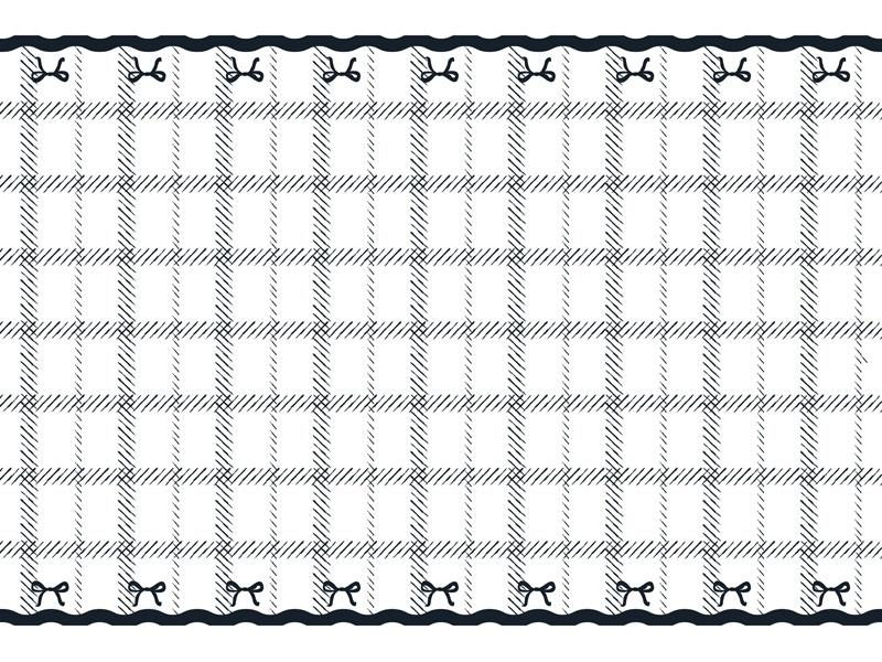 Obrus jednostronny i jednorazowy o długości 180 cm i szerokości 120 cm, mix kolorów. Obrus z nadrukowanymi czarnymi kokardkami i kratką.
