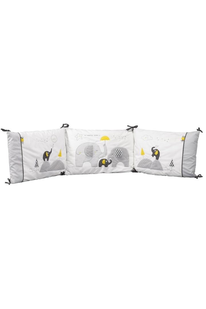 Ochraniacz do łóżeczka francuskiej firmy Sauthon . Pasuje zarówno do łóżeczka 120x60cm jak i 140x70cm. Zdejmowany pokrowiec wykonany jest z delikatnej polibawełny, którą można prać w temp.30 st. C.