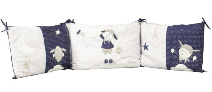 Ochraniacz do łóżeczka francuskiej firmy Sauthon . Pasuje zarówno do łóżeczka 120x60cm jak i 140x70cm. Zdejmowany pokrowiec wykonany jest z delikatnej polibawełny, którą można prać w temp.30 st. C.