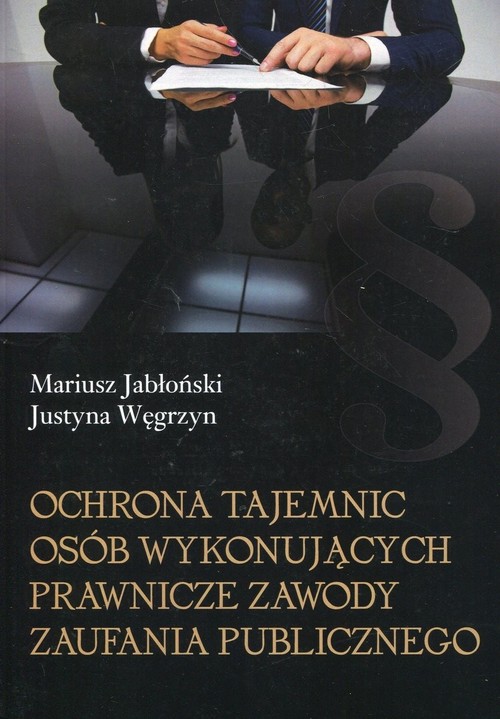 Zawody zaufania publicznego i zawody prawnicze Mariusz Jabłoński, Justyna Węgrzyn Ochrona informacji i jej źródeł Mariusz Jabłoński, Justyna Węgrzyn Pojęcie i klasyfikacja tajemnic Mariusz Jabłoński, Justyna Węgrzyn Prawne zdefiniowanie tajemnic osób wykonujących prawnicze zawody zaufania publicznego Mariusz Jabłoński, Justyna Węgrzyn Obowiązek ochrony prywatności i danych osobowych Justyna Węgrzyn Odpowiedzialność karna za naruszenie tajemnicy zawodowej Mariusz Jabłoński, Justyna Węgrzyn Ochrona tajemnic zawodów zaufania publicznego jako podstawa ograniczenia prawa dostępu do informacji publicznej i prawa do ponownego wykorzystania informacji sektora publicznego Mariusz Jabłoński