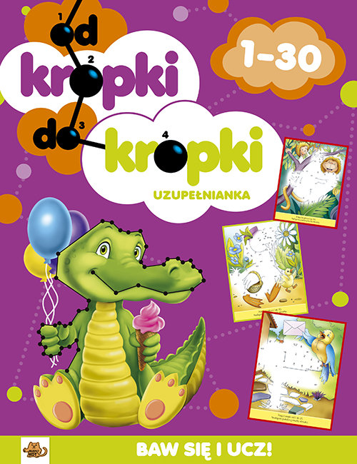 Połącz liniami kropki w zakresie 1-30 i pokoloruj ilustracje. Książeczki z serii "Od kropki do kropki" zapewniają dziecku mnóstwo zabawy. Doskonale ćwiczą u dziecka sprawność motoryczną i koordynację wzrokowo-ruchową dziecka. Przy okazji dziecko uczy się liczyć oraz poznaje alfabet. Seria składa się z 4 książeczek o różnym stopniu trudności: liczby w zakresie 1-30, 1-50, 1-80 oraz litery od A do Z.