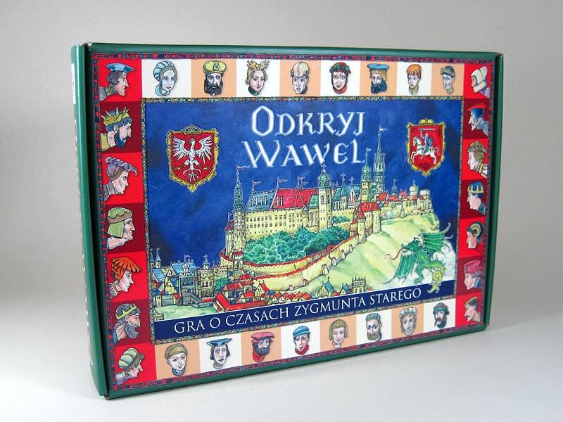 Wyobraźcie sobie, że codziennie spoglądają na Was 194 głowy. 194 nieznane, zawieszone na suficie twarze, których oczy uważnie śledzą każdy Wasz ruch. Niemożliwe? Zapytajcie króla Zygmunta Augusta, który na co dzień sprawował rządy w Sali Poselskiej na Wawelu – jej strop zdobiony był realistycznymi płaskorzeźbami różnorodnych twarzy. Dzięki grze Odkryj Wawel rozgościcie się w królewskim zamku. Bądźcie łowcami głów! Odkryjcie Wawel dosłownie i w przenośni. Celem gry jest odsłonięcie planszy, na której narysowane jest Wzgórze Wawelskie. Na początku gry jest ono przesłonięte przez żetony, na których odwzorowane zostały głowy z zamkowej Sali Poselskiej. Wygrywa ten z Was, kto zbierze najwięcej żetonów. By je zdobyć, musicie poprawnie odpowiedzieć na znajdujące się na osobnych kartach pytania. Pola na planszy to najważniejsze komnaty Zamku Królewskiego. Poznajcie Wawel dzięki jego najbardziej niezwykłym mieszkańcom! Wiek: 8-99 Liczba graczy: 2-4 Czas: 45-60
