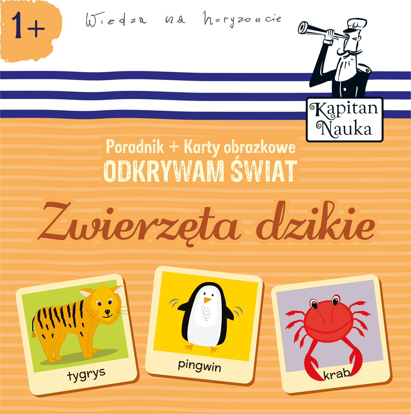 Zestaw Odkrywam świat Zwierzęta dzikie to wyjątkowa propozycja dla rodziców i opiekunów wspomagająca wczesny rozwój umysłowy dzieci. Zabawa z kartami doskonale zaspokaja naturalną dla dzieci ciekawość świata, wspiera rozwój mowy i poszerza zasób słownictwa – a wszystko to podczas wspólnej, fascynującej zabawy! Pakiet składa się z poradnika dla rodziców napisanego przez doświadczonych psychologów dziecięcych oraz 17 kart z kolorowymi ilustracjami.