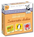 Zestaw trwałych, usztywnionych kart obrazkowych dla dzieci od 1. do 3. roku życia służy do kreatywnej nauki i zabawy w czytanie. Na kartach zamieszczono kolorowe rysunki z podpisami (awers) i powtórzonym dużym napisem (rewers). Zabawne ilustracje z wyraźnymi podpisami są dostosowane do wieku najmłodszego odbiorcy. Pozwalają poznać nazwy dzikich zwierząt, a jednocześnie przygotowują do nauki czytania globalnego.