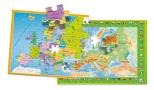 Uczenie się geografii Europy jeszcze nigdy nie było tak zabawne! Wewnątrz opakowania znajdziecie dwustronną układankę z fizyczną i polityczną mapą Europy oraz rysunkami wszystkich flag europejskich. Ponadto do zestawu dołączona jest talia kart, którą możecie grać i uczyć się przy okazji nazw głównych stolic europejskich oraz poznawać dane na temat ludności i powierzchni krajów. Dla dzieci w wieku od 7 lat.