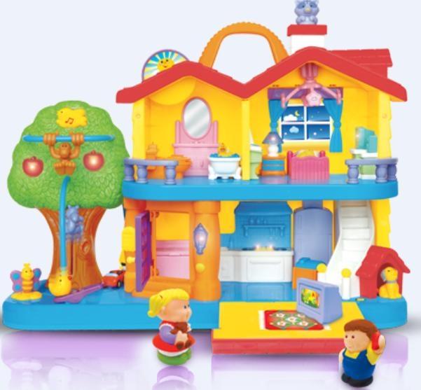 Zabawka, która umożliwi każdemu maluchowi poznanie zwyczajów panujących w domu. Domek jest pełen ciekawych niespodzianek, ekscytujących światełek oraz wypełniony dźwiękami i rymowankami prawie w każdym miejscu. Maluch naciskając na przedmioty i urządzenia znajdujące się w domku, usłyszy ich realistyczny dźwięk, między innymi odgłos skrzypiących drzwi, naturalne dźwięki telefonu, kuchenki czy pralki. Dodatkową radość sprawi dziecku możliwość przełączenia zabawki z dźwięków na wesołe rymowanki. Pociecha naciskając wtedy na dany przedmiot, który wydawał realistyczny odgłos, usłyszy zabawną rymowankę. Każda z funkcji domu to kreatywna zabawa, która pobudzi twórczość dziecka. Zabawka wspomaga naukę codziennych czynności domowych, jak również uczy logicznego myślenia.
