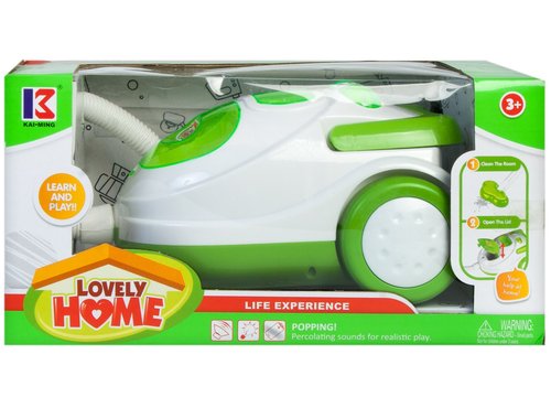 Najwyższy czas na odkurzanie. Pozwól dziecku aby Ci pomogło w podstawowych obowiązkach domowych np odkurzaniu! Produkt ten idealnie odzwierciedla prawdziwy sprzęt domowy, wydaje odgłosy odkurzania . Ponadto odkurzacz po rozsypaniu na dywanie kuleczek dołączonych do niego, odkurza je do pojemnika znajdującego się w środku sprzętu. Produkt wykonany z plastiku. Przeznaczony dla dzieci od lat 3. Wymaga zasilania bateriami 3x LR6. Wymiary opakowania (dł.x wys.x gł.) [cm] 30x15x19