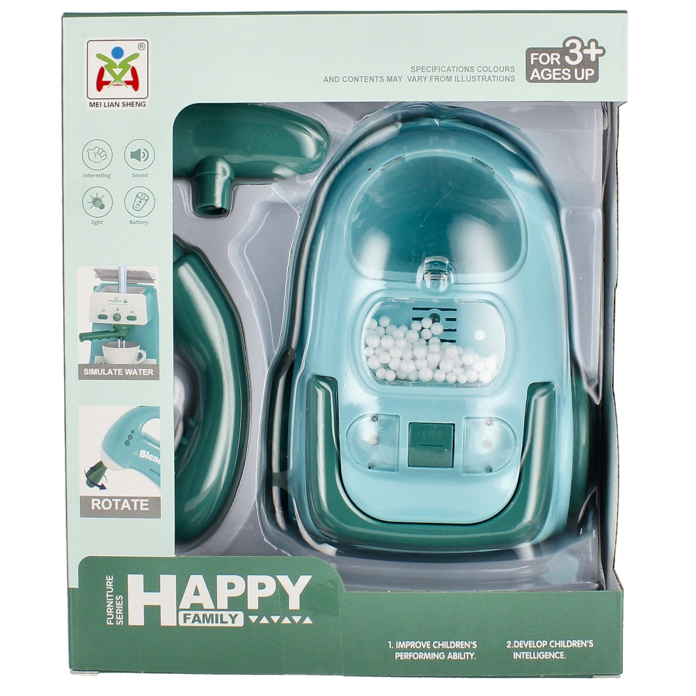 Zalety produktu  posiada efekty dźwiękowe oraz świetlne, podczas pracy powoduje wirowanie styropianowych kuleczek dołączonych do zestawu. Najwyższy czas na porządki.