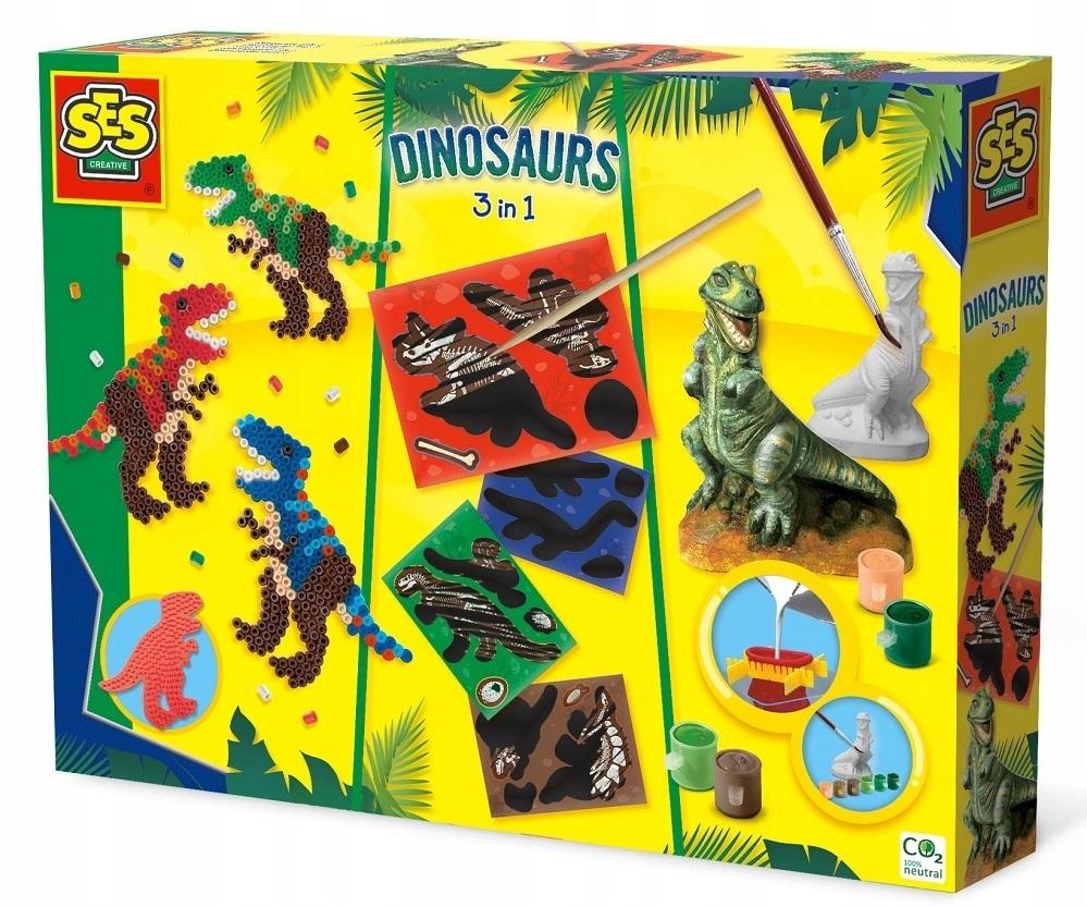 Ten wyjątkowo duży, zestaw do prac ręcznych z firmy SES umożliwia wykonanie trzech różnych czynności rękodzielniczych z dinozaurami!