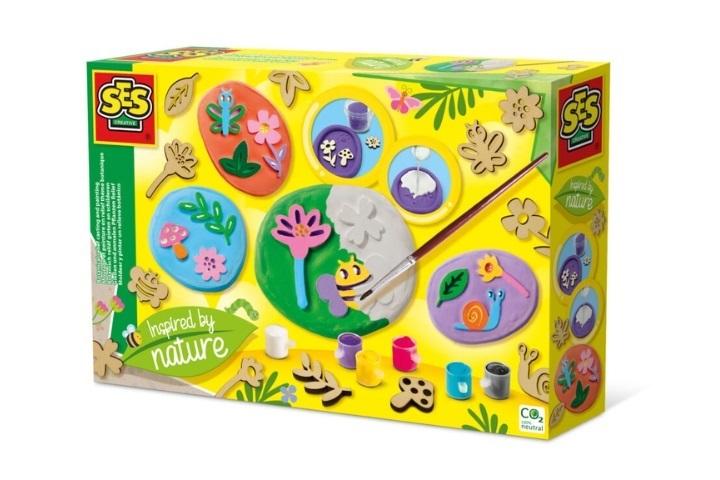 Zrób sam najpiękniejsze ozdoby gipsowe! Zestaw zawiera wyjątkowe drewniane szablony, które przedstawiają elementy natury takie jak zwierzęta, kwiaty czy grzyby. By stworzyć piękne gipsowe ozdoby wystarczy odcisnąć drewniane szablony w fioletowej masie a następnie zalać formę gipsem. Zestaw zawiera również farbki dzięki, którym możemy nadać koloru stworzonym dziełom. Godziny kreatywnej zabawy gwarantowane!
