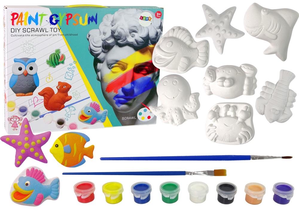 Zestaw Kreatywny Odlewy Gipsowe Do Malowania Farby Zwierzęta Morskie Rozwijanie kreatywności u małych dzieci jest szczególnie istotne w czasie, kiedy zaczynają się integrować z rówieśnikami. Wspólne prace plastyczne wpływają pozytywnie na relacje międzyludzkie oraz uczą dzieci kooperacji. Zabawka nauczy skupienia uwagi na odlewie oraz sprawności łatwego uczenia się i przyswajania wiedzy. Małe elementy ćwiczą precyzję i koordynacje, co zaprocentuje również w szkole. Dwanaście różnych wzorów pozwoli na spędzenie wspólnie czasu na zabawie, wystarczy wziąć pędzelki oraz farby i rozpocząć malowanie. Zmień się w artystę i rozpocznij malowanie! Zestaw przedstawia zwierzęta morskie takie jak: rybki, delfiny, ośmiornica i inne. Po wyschnięciu pomalowanych odlewów specjalne naklejki umożliwią przyklejenie zabawek do powierzchni. Można przyozdobić nimi ramkę lub mebel. Elementy zestawu to: - zestaw 8 farbek - dwa pędzelki - zestaw 12 foremek gipsowych - naklejki Wymiary gipsu: około 8 cm x 7 cm x 2 cm Wymiary opakowania: 43 cm x 33 cm x 5 cm Zabawka przeznaczona dla dzieci powyżej 3 roku życia. Zgodne z certyfikatem CE i zgodne z normą EN71