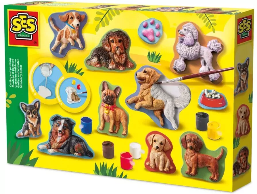 Zestaw zawiera formę do odlewania 9 najpopularniejszych psów i 2 akcesoria z gipsu.