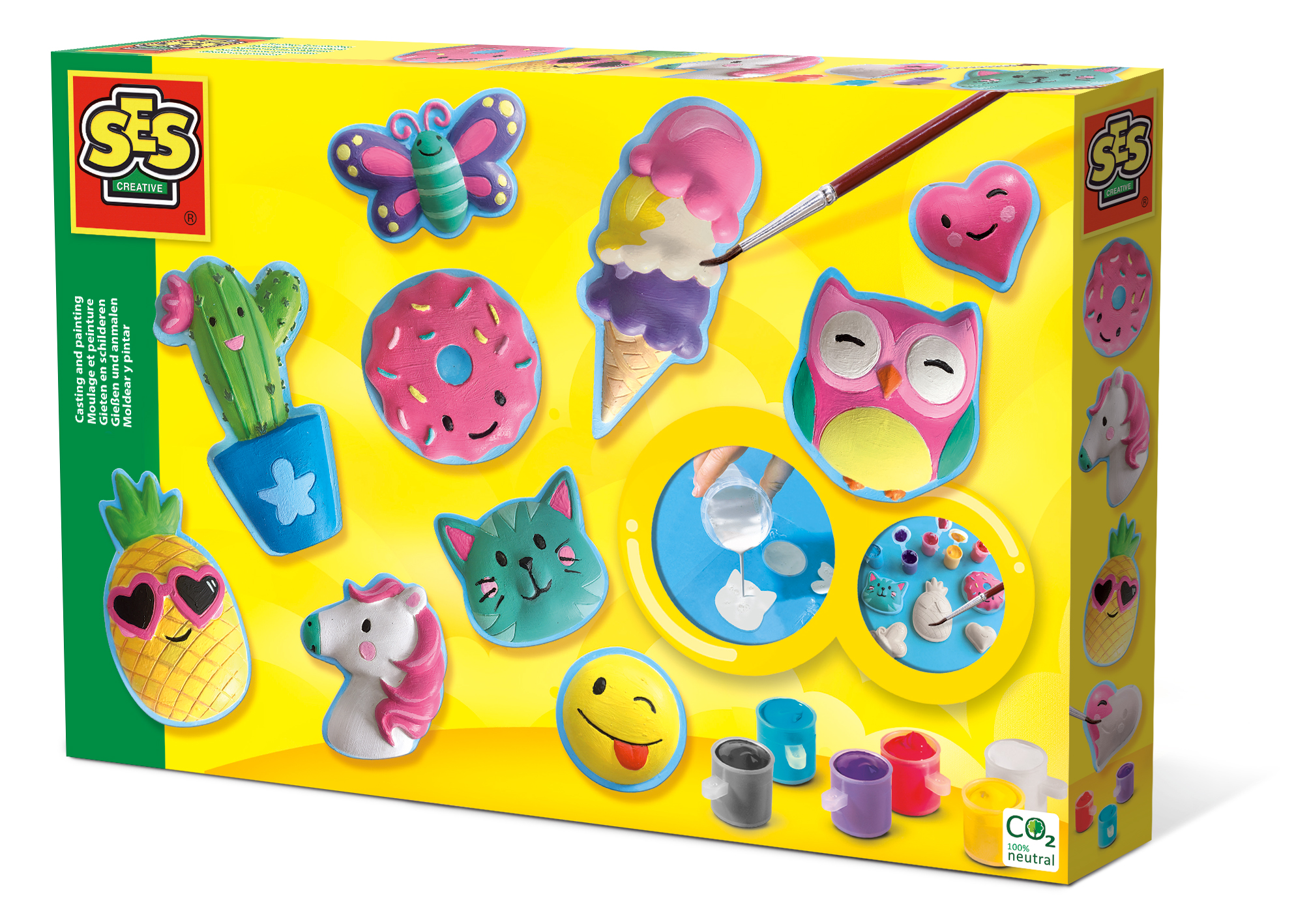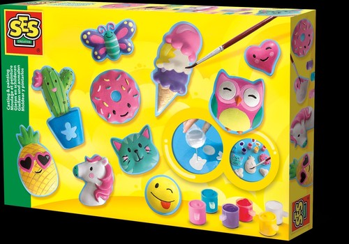 Zestaw do odlewów stworzony przez SES Creative pozwala na wykonanie wielu kolorowych i zabawnych figurek, takich jak jednorożec, buźka, sowa i motyl. Wlewamy rozrobiony gips do formy i pozostawiamy aż wyschnie. Następnie malujemy je w ładnych, modnych kolorach. Świetna zabawa i wspaniałe efekty! Dla dzieci w wieku od 5 lat.