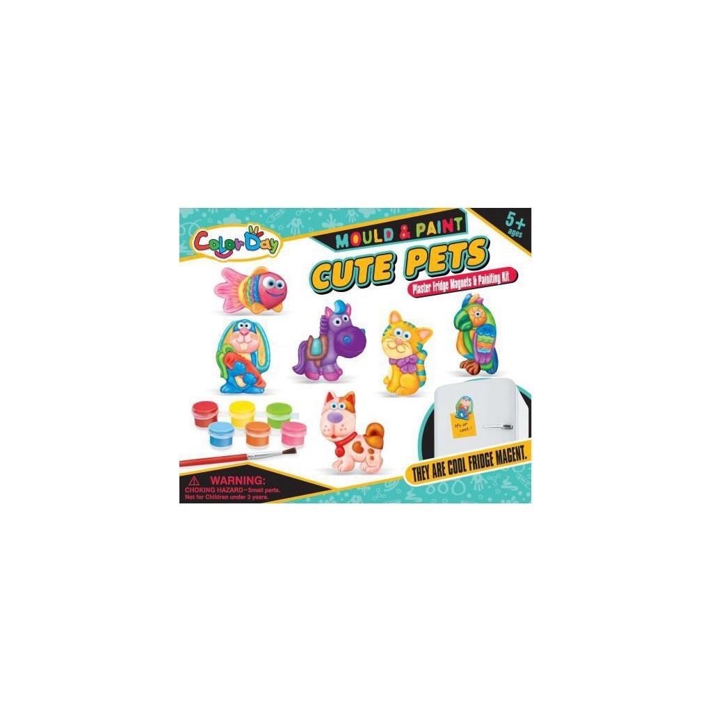Zestaw, który zapewni wiele zabawy, a przy tym rozwinie zdolności manualne dzieci. Dzięki specjalnym foremkom w kształcie zwierzątek oraz dołączonych farbek dzieci stworzą na przykład pięknego kotka. Jeżeli dołączy się do nich magnesy są idealną ozdobą na lodówkę. Zestaw zawiera: - 6 foremek do odlewu z kształtami, - proszek gipsowy, - magnesy, - pędzelek, - 6 farbek, - instrukcję. Zabawka posiada certyfikat CE. Zabawka przeznaczona dla dzieci powyżej 5go roku życia.