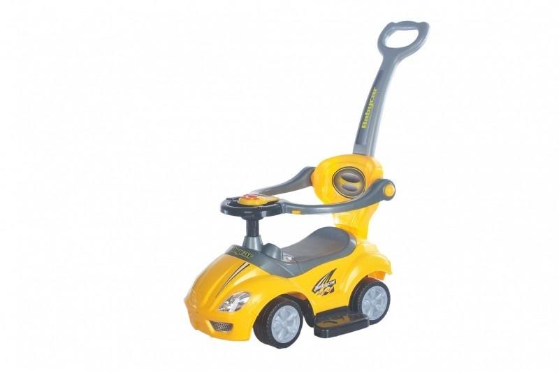 Samochód, jeździk dla dziecka z pełnym wyposażeniem, ze skrętnymi przednimi kołami.
