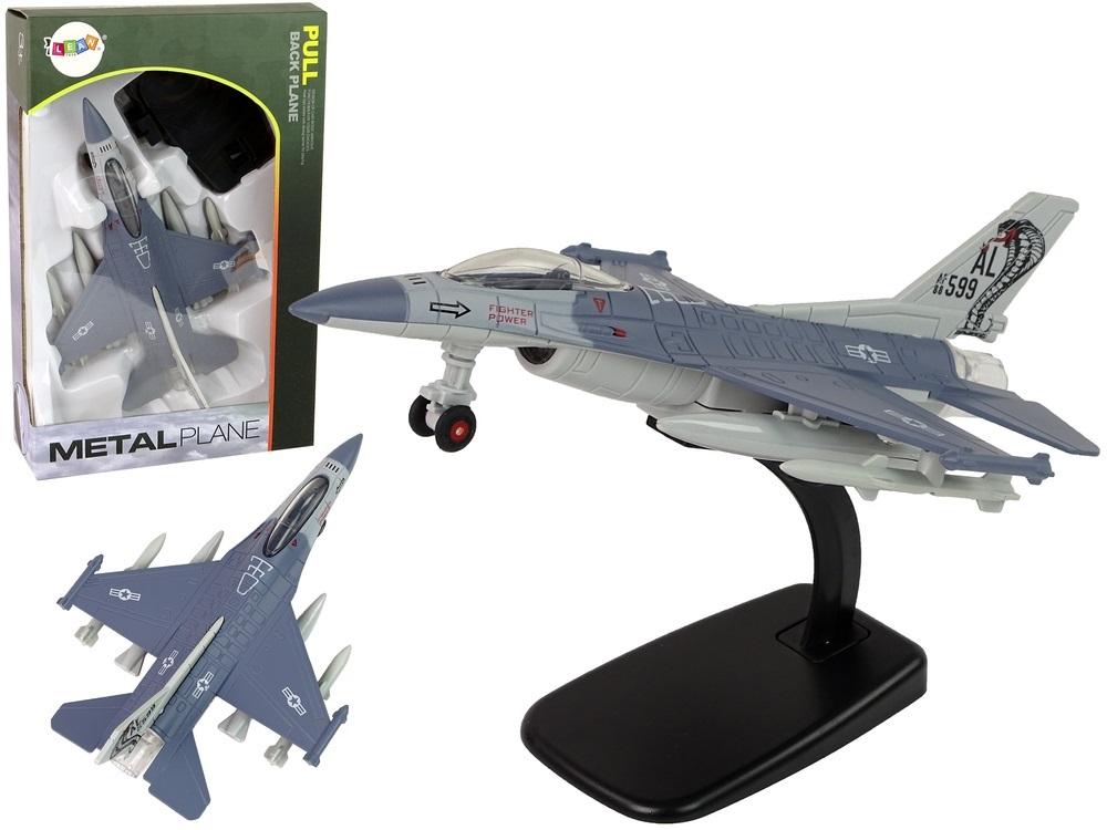 Gratka dla młodych fanów lotnictwa. Przedstawiamy szary samolot wojskowy. Dopracowany wygląd zabawki, przypomina jej realny odpowiednik, z pewnością sprawi, że rodzeństwo i rodzice z chęcią włączą się do wspólnej rozrywki. Ten model nie tylko posłuży dziecku do zabawy, ale i do ozdoby pokoju, dzięki podstawce zawartej w zestawie.