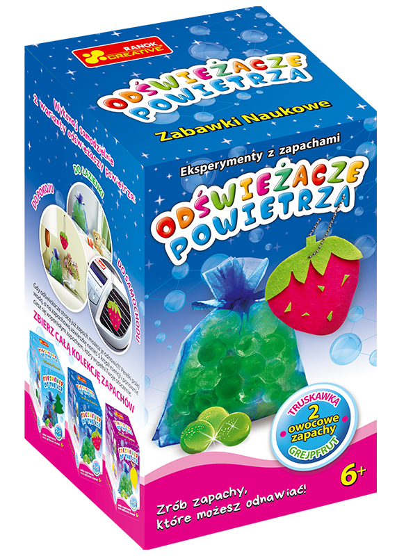 Eksperymentowałeś z różnymi zapachami? A czy próbowałeś zrozumieć, czym jest węch i jak bardzo jest dla nas istotny? Z naszymi zestawami z serii «Odświeżacze powietrza» łatwo i szybko przygotujesz oszołamiające zapachy do pokoju, szafy, samochodu! Dodatkowo przeprowadzisz ciekawe eksperymenty, które pozwolą zrozumieć jak ważną rolę w codziennym życiu odgrywa zmysł zapachu! Eksperymentuj i zdobywaj nową wiedzę! Cechy Wiek dziecka:6 + Język:polski Rozmiar opakowania:16 x 10 x 10 cm Waga zestawu:0.1290 kg W zestawie: • Małe kuleczki suchego hydrożelu (Poliakrylan sodu) • Esencja truskawkowa • Esencja grejpfrutowa • Zawiązywany woreczek • Filc • Szablon • Plastikowy łańcuszek • Zapinka do łańcuszka • Pipetka • Kubeczek • Okulary ochronne • Instrukcja