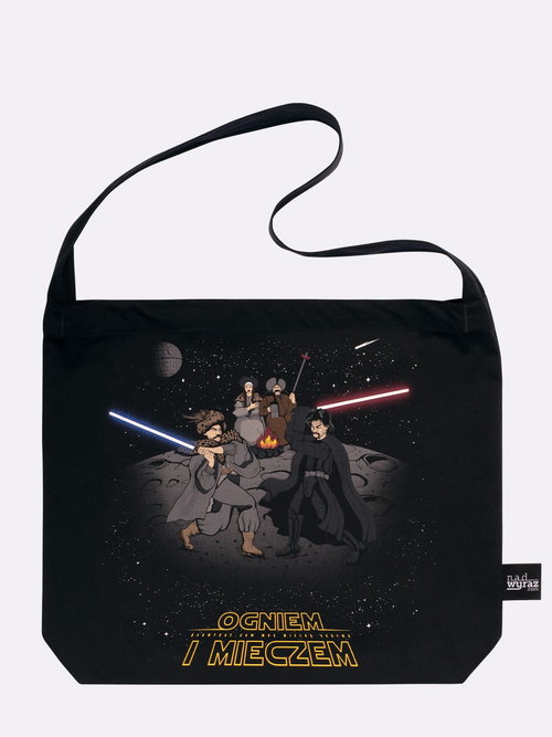 Kulturalne spotkanie nad kosmicznym ogniskiem bohaterów powieści „Ogniem i mieczem” przerodziło się w istną awanturę na cztery fajerki! Jan Skrzetuski walczący z Jurko Bohunem na miecze świetlne? Przerażona i piękna Helena Kurcewiczówna oraz Jan Onufry Zagłoba piekący bezglutenową wegekiełbaskę okraszoną gwiezdnym pyłem, a w tle Gwiazda Śmierci? Takie dziwy i czarne dziury tylko w naszych skromnych progach! Torba OGNIEM I MIECZEM to nie lada rarytas dla fanów twórczości Henryka Sienkiewicza i uniwersum George’a Lucasa. To prawdziwe gwiezdne wojny w polsko-kozackim wydaniu! Gramatura 280 g/m2 Nadruk wykonany metodą sitodruku (wysokiej jakości, bardzo trwały) 100% bawełna, torba ekologiczna Idealny prezent dla fanów Gwiezdnych Wojen lub Ogniem i Mieczem W środku torby pojemna kieszonka na akcesoria. Elegancka metka boczna. Wymiary: 41 x 45 x 8 cm, ucho: 77 x 7 cm.